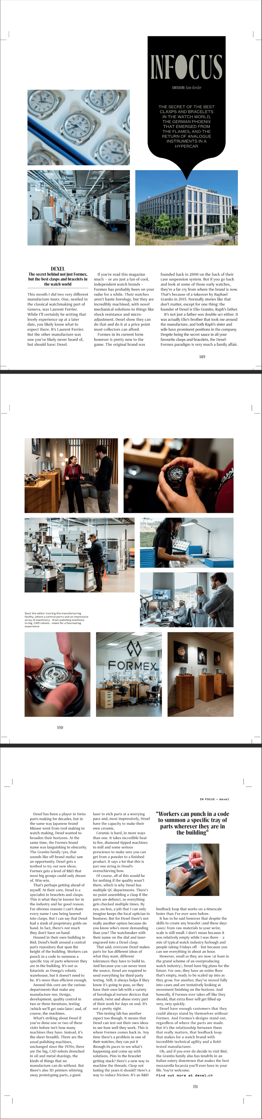 DEXEL The secret behind not just Formex, but the best clasps and bracelets in the watch world MEDIA #MEDIA Related Articles MEDIA DEXEL The secret behind not just Formex, but the best clasps and bracelets in the watch world 22nd Dec 2025 MEDIA Céramique + météorite : cette nouvelle Formex coche toutes les cases de la montre tendance ! 19th Dec 2025 MEDIA Formex gives in to the power of the dark side, bringing a dark meteorite dial to the Essence Ceramica Dark Matter 19th Dec 2025 MEDIA WatchTime: Introducing the Formex Essence Ceramica Dark Matter 10th Dec 2025 MEDIA Fratello Watches: Formex Doubles Down On Ceramic With The Essence Ceramica Automatic COSC “Dark Matter” 41mm 10th Dec 2025 MEDIA Gear Patrol: This Innovative Blacked-Out Sports Watch Hides a Few Tricks Up Your Sleeve 10th Dec 2025 MEDIA Hourstriker: Formex Essence Ceramica Dark Matter 10th Dec 2025 MEDIA Monochrome Watches: First Look COSC x Ceramic x Meteorite… Meet the Formex Essence Ceramica Dark Matter 10th Dec 2025 MEDIA OracleTime: Formex Essence Ceramica Dark Matter Watch Review 10th Dec 2025 MEDIA WatchPoint: The Formex Essence Ceramica Dark Matter – the cherry on top of the most technologically impressive ceramic watch ever? 10th Dec 2025 STORY Does Formex offer any Black Friday discounts? 28th Nov 2025 REVIEW Hands-on Video Review by OT: The Podcast, FORMEX Essence 39 COSC Chronometer Under $2k?! 25th Nov 2025 REVIEW Hands-on Video Review by Just One More Watch, Finally! But Why Did It Take So Long? Formex Essence 41 Stainless! 25th Nov 2025 REVIEW FORMEX : la marque suisse qui bouscule l’horlogerie traditionnelle – Révélations exclusives 24th Nov 2025 EVENTS Formex at WatchTime Düsseldorf – 24 Oct 2025 28th Oct 2025 REVIEW The Only Field Watch I Really Like - Formex Field Automatic Grey Dial 27th Oct 2025 MEDIA From Limited to Lineage: Formex Essence 41mm COSC Debuts Four Signature Dials and Next-Level Comfort 23rd Oct 2025 REVIEW The Best Everyday Watch Gets An Upgrade! 21st Oct 2025 MEDIA Gear Patrol: One of the Best Watches Under $2,000 Just Got Even Better 20th Oct 2025 REVIEW Formex Essence 41mm Gamaret - A Lot of New Tech, Same Gorgeous Watch 17th Oct 2025 MEDIA Formex Essence 41mm Automatic COSC Receives Stainless Steel Update 17th Oct 2025 MEDIA Monochrome Watches: First Look The New Formex Essence 41mm Automatic COSC in Steel 16th Oct 2025 MEDIA Essence Ceramica 41mm COSC: pura potencia, ajuste preciso y estilo decididamente sólido 6th Oct 2025 MEDIA Nouvelle Formex Essence Ceramica: mouvement Soprod COSC et quatre nouveaux cadrans 3rd Oct 2025 MEDIA Scottish Watches Podcast #712 : Our Loch Ness Monster Revealed Plus The Latest Watches and News 3rd Oct 2025 MEDIA Formex Launch Essence Ceramica COSC Automatic 41mm with Closed Dial 3rd Oct 2025 MEDIA Formex Essence Ceramica COSC: The Art of Ceramic, Redefined 3rd Oct 2025 MEDIA Formex Introduces New Dial Options in the Essence Ceramica Collection 2nd Oct 2025 REVIEW How I'm Saving $10,000 with this Swiss Brand 1st Oct 2025 REVIEW Formex Essence 39 - First Impressions 29th Sep 2025 REVIEW Hands-On With The New Formex Essence Ceramica Automatic COSC 41mm 26th Sep 2025 MEDIA Hourstriker: Formex Essence Ceramica Advanced Materials Accessible Innovation 26th Sep 2025 MEDIA Monochrome Watches: Introducing Formex Dresses its Bestseller in Full-Ceramic with the New Essence Ceramica 26th Sep 2025 REVIEW The best watch money can't buy. FORMEX FIELD AUTOMATIC 25th Sep 2025 REVIEW Formex Essence Ceramica Skeleton COSC GT Review 11th Sep 2025 REVIEW #FOCUS - Formex Field Automatic Gen.2 after 3 days of testing in the Pyrenees! 9th Sep 2025 MEDIA Formex CEO Teases a New Watch & Talks Entrepreneurship - Watch the Tech Podcast 8th Sep 2025 MEDIA Formex Field Automatic Gen 2: robustez y diseño refinado 29th Aug 2025 REVIEW A Return To Elegant Simplicity: Five Watch Options With Arabic Numerals 25th Aug 2025 MEDIA T3: This watch dial is older than humanity itself 18th Aug 2025 MEDIA Gear Patrol: The Most Innovative Affordable Sports Watch Just Changed the Game Again 18th Aug 2025 MEDIA Fratellowatches: Introducing The Formex Essence 41mm Space Ghost — A New Medium Size With A Meteorite Dial And Even More Technical Ingenuity 18th Aug 2025 REVIEW Hands-on Review by Oracle Time: Formex Essence 41 Space Ghost Watch Review 14th Aug 2025 MEDIA Hands-on Debut-Formex Essence 41mm 'Space Ghost' Watch 14th Aug 2025 MEDIA Formex rocket-launches Essence 41mm in ‘Space Ghost’ meteorite 14th Aug 2025 MEDIA Monochrome: First Look The New Formex Essence Space Ghost 41mm Automatic COSC 14th Aug 2025 Review Hands-on Review by Business Montres, Dix evaluations personnelles de dix montres masculines du GPHG2025 31st Jul 2025 REVIEW Hands-on Video Review by SeriousWatches, Formex Essence Leggera FortyThree Space Glacier Limited Edition 31st Jul 2025 REVIEW Hands-on Video Review by SeriousWatches, Formex REEF 39.5mm Automatic Chronometer 300m Green (Pre-owned) 31st Jul 2025 REVIEW The Hottest Watches To Own RIGHT NOW 25th Jul 2025
