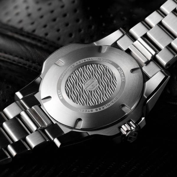 Besides contributing to visual appeal, the details on the REEF also serve a purpose. For a timepiece to be a watch for all occasions, it needs to feel exceptionally comfortable on the wrist. For even more wrist comfort, Formex added their patented Carbon Fiber Composite Folding Clasp that allows for fine-adjustment of the strap length on the go, allowing for a perfect fit on the wrist in all conditions and temperatures. The strap can be changed without the use of any tools with Formex's patented quick release system. The stainless steel bracelet with screwed links has the same quick release system and also features a unique fine-adjustment system.